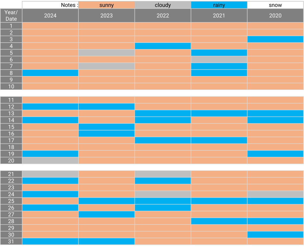 The weather: Kyoto December 08.08.202409.02.2025 The weather in December for the past 5 years Sunny days for the past 5 years: 1, 2, 9, 10, 11, 18, 23, 29