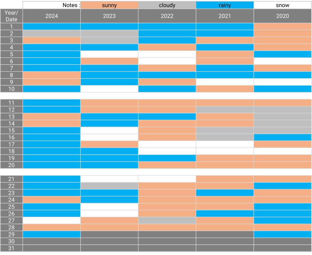 The weather: Kyoto February 07.08.202409.02.2025 The weather in February for the past 5 years Sunny days for the past 5 years: 28