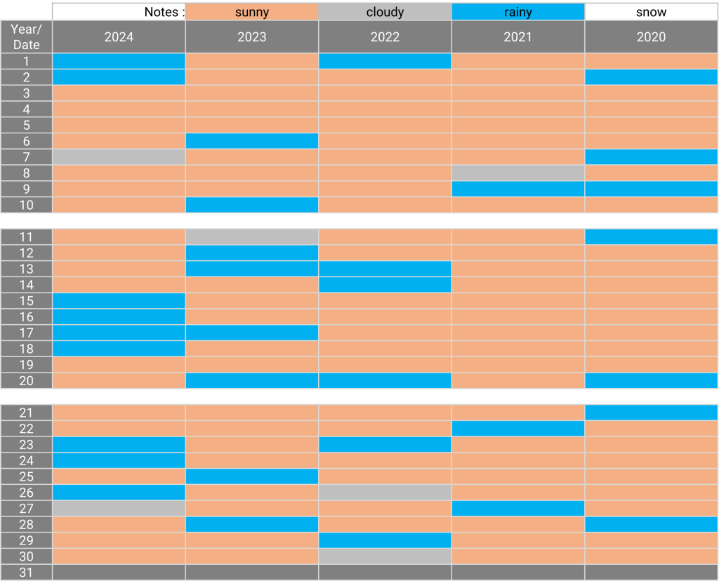 The weather: Kyoto November 08.08.202409.02.2025 The weather in November for the past 5 years Sunny days for the past 5 years: 3~5, 19