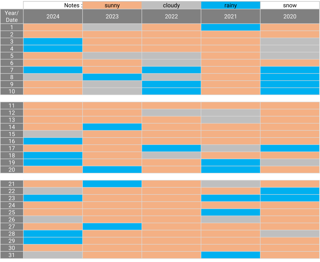 The weather: Kyoto October 08.08.202409.02.2025 The weather in October for the past 5 years Sunny days for the past 5 years: 2, 11, 24, 30