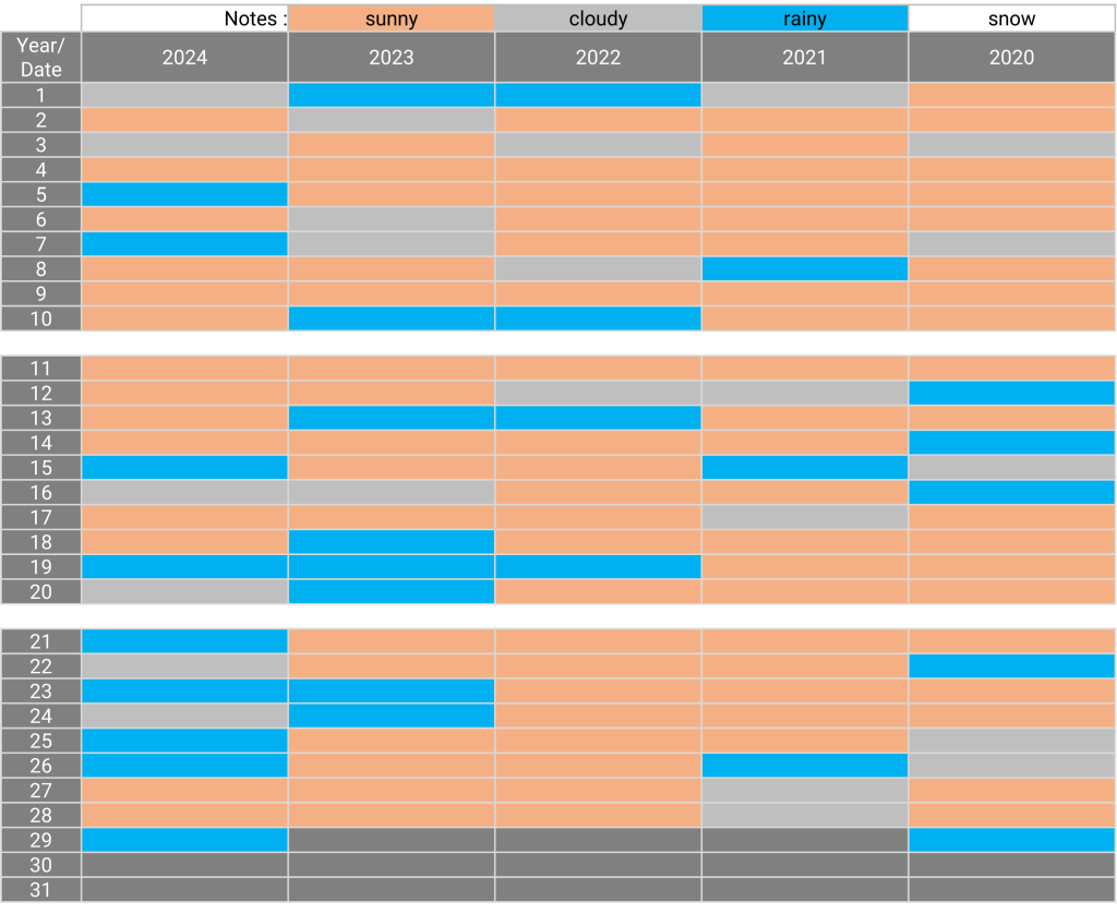 The weather: Osaka February 06.08.202408.02.2025 The weather in February for the past 5 years Sunny days for the past 5 years: 4, 9, 11