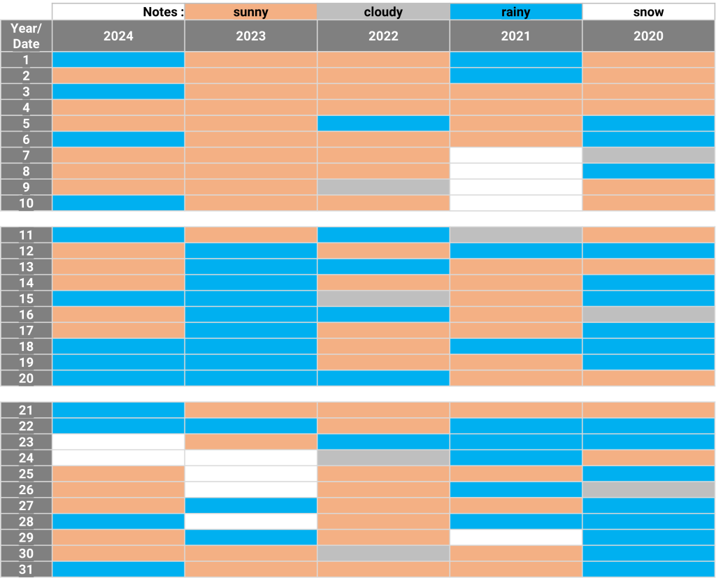 The weather: Hiroshima April 04.11.2024 The weather in April for the past 5 years Sunny days for the past 5 years: 10