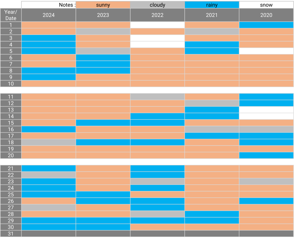 The weather: Karuizawa, Nagano April 27.12.2024 The weather in April for the past 5 years Sunny days for the past 5 years: 10, 19