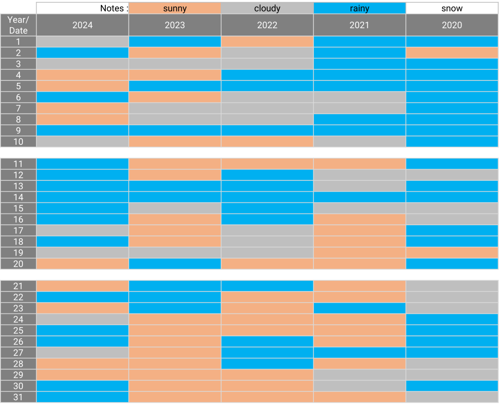 The weather: Kawaguchiko, Yamanashi July 26.12.2024 The weather in July for the past 5 years Sunny days for the past 5 years: N/A