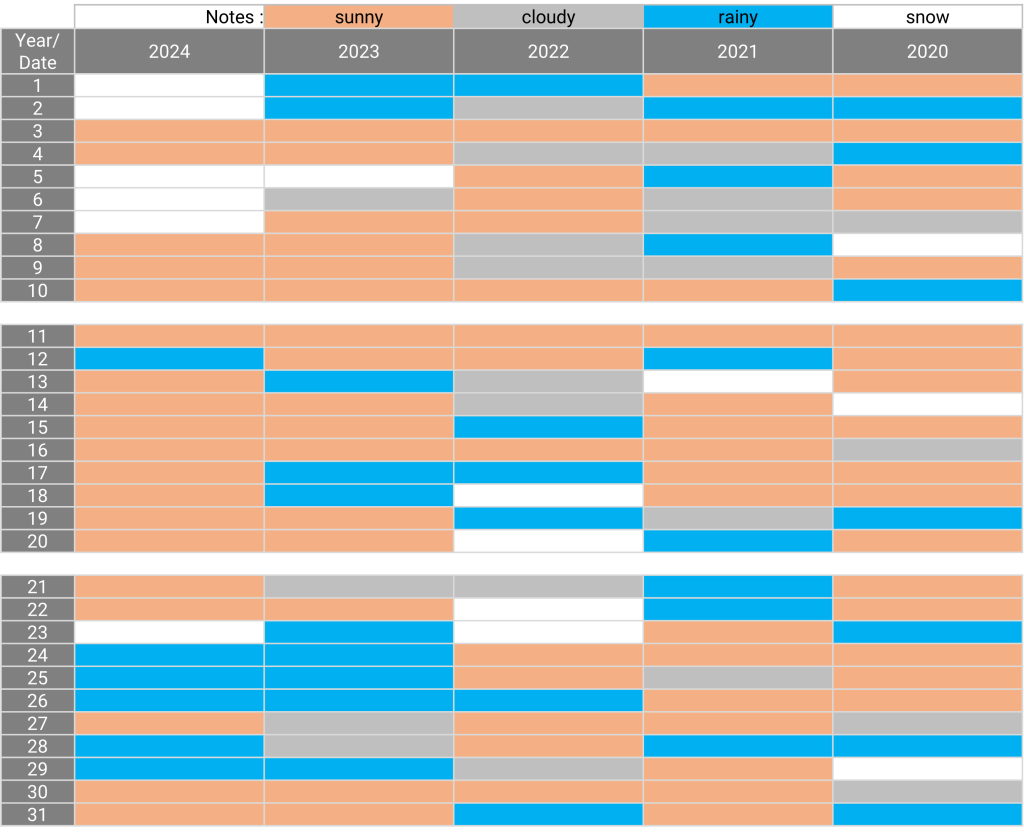 The weather: Kawaguchiko, Yamanashi March 26.12.2024 The weather in March for the past 5 years Sunny days for the past 5 years: 3, 11