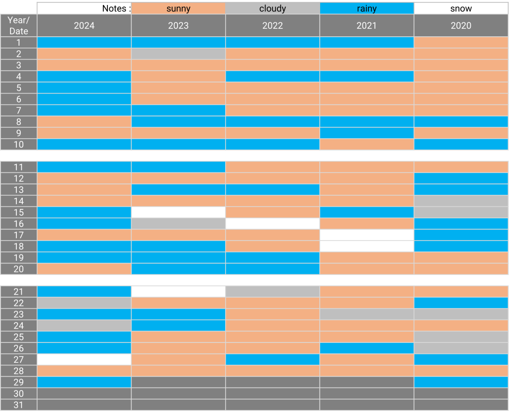 The weather: Kobe, Hyogo February 27.12.2024 The weather in February for the past 5 years Sunny days for the past 5 years: 3, 28