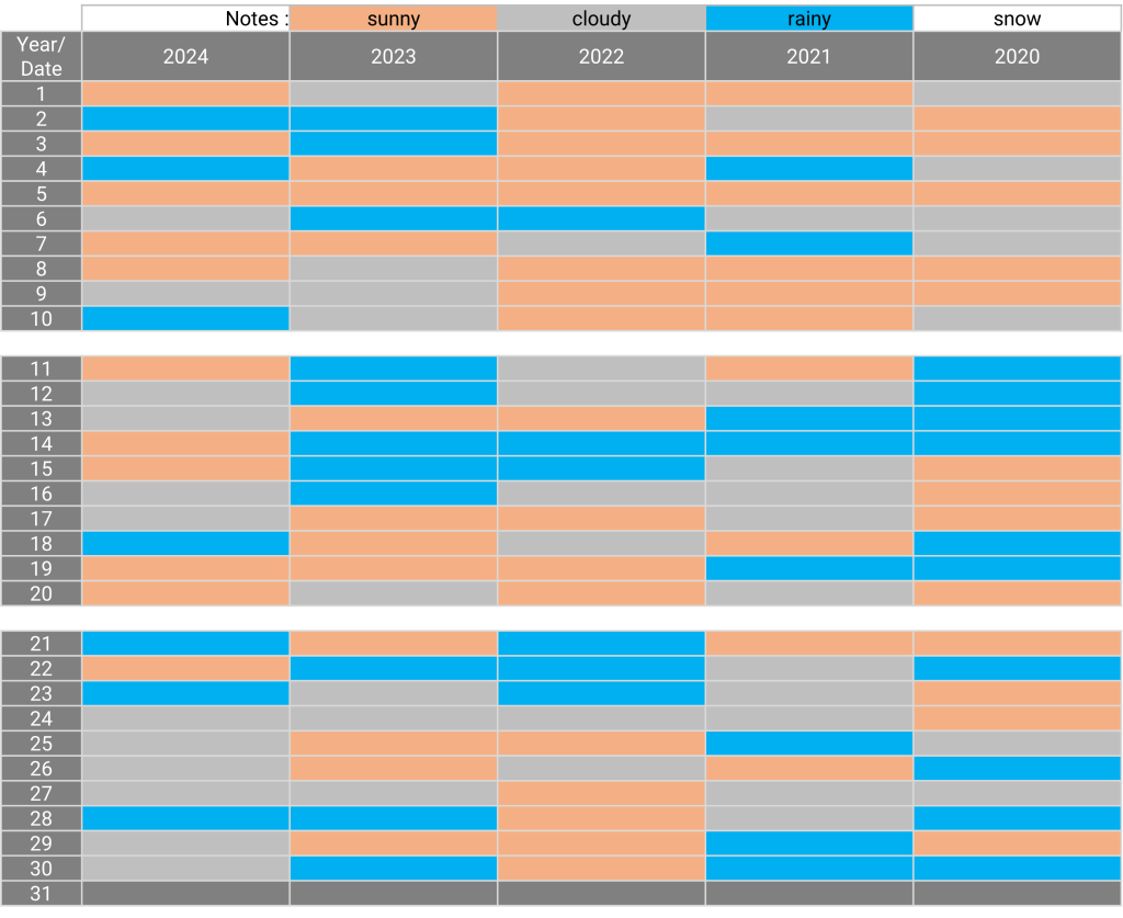 The weather: Kofu, Yamanashi June 26.12.2024 The weather in June for the past 5 years Sunny days for the past 5 years: 5