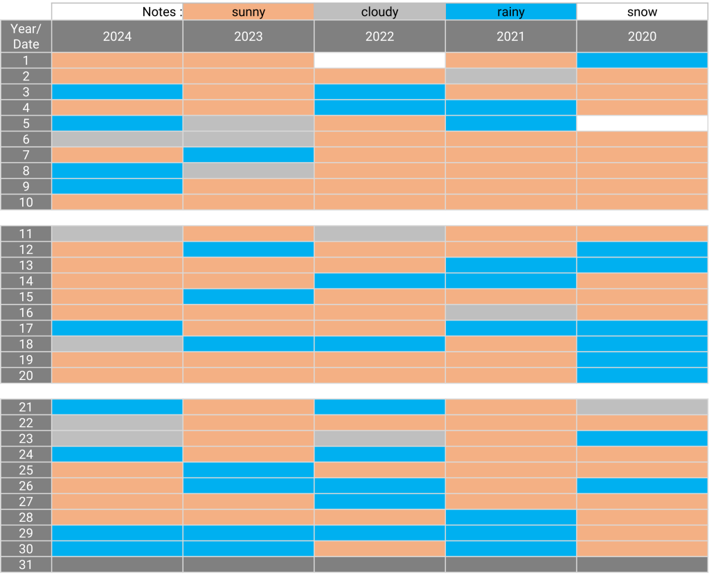 The weather: Matsumoto, Nagano April 27.12.2024 The weather in April for the past 5 years Sunny days for the past 5 years: 10