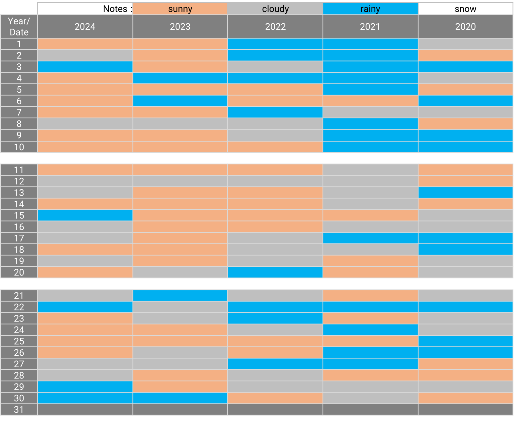 The weather: Matsumoto, Nagano September 27.12.2024 The weather in September for the past 5 years Sunny days for the past 5 years: N/A