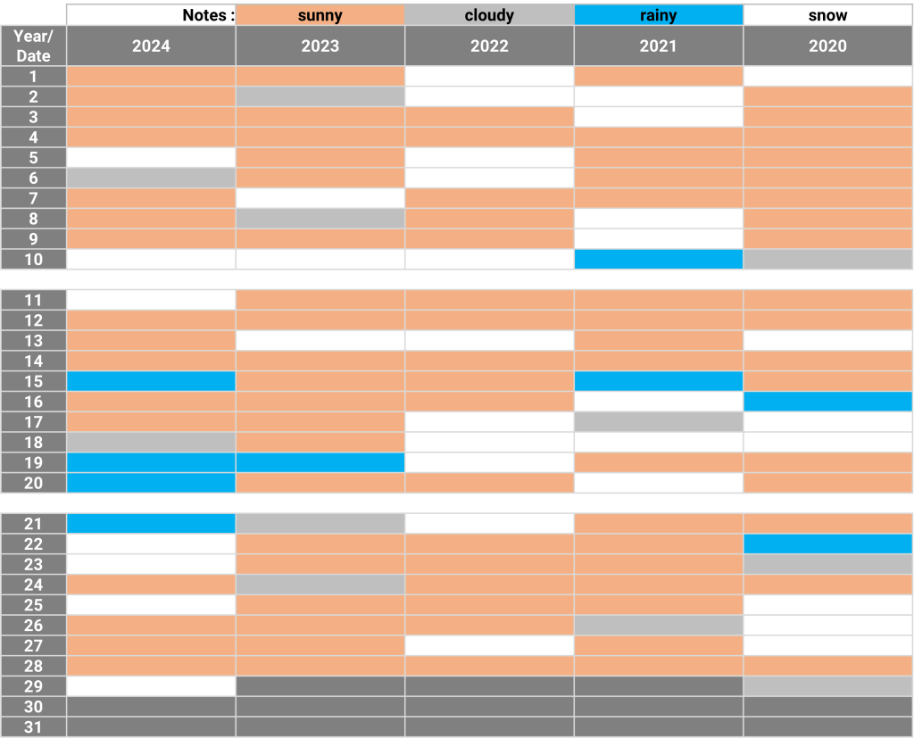 The weather: Nikko, Tochigi February 11.09.2024 The weather in February for the past 5 years Sunny days for the past 5 years : 4, 12, 14, 28