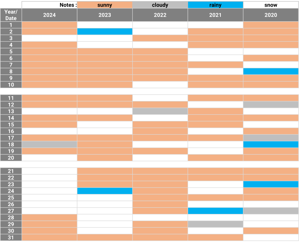 The weather: Nikko, Tochigi January 11.09.2024 The weather in January for the past 5 years Sunny days for the past 5 years : 9