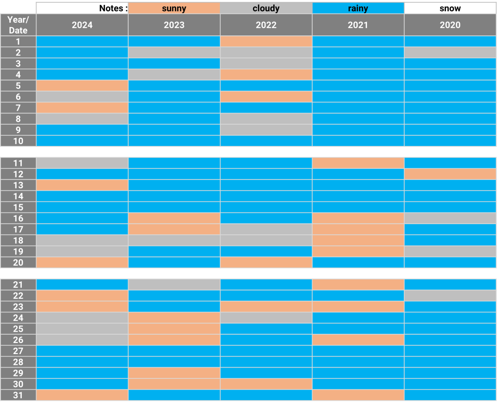 The weather: Nikko, Tochigi July 11.09.2024 The weather in July for the past 5 years Sunny days for the past 5 years : N/A