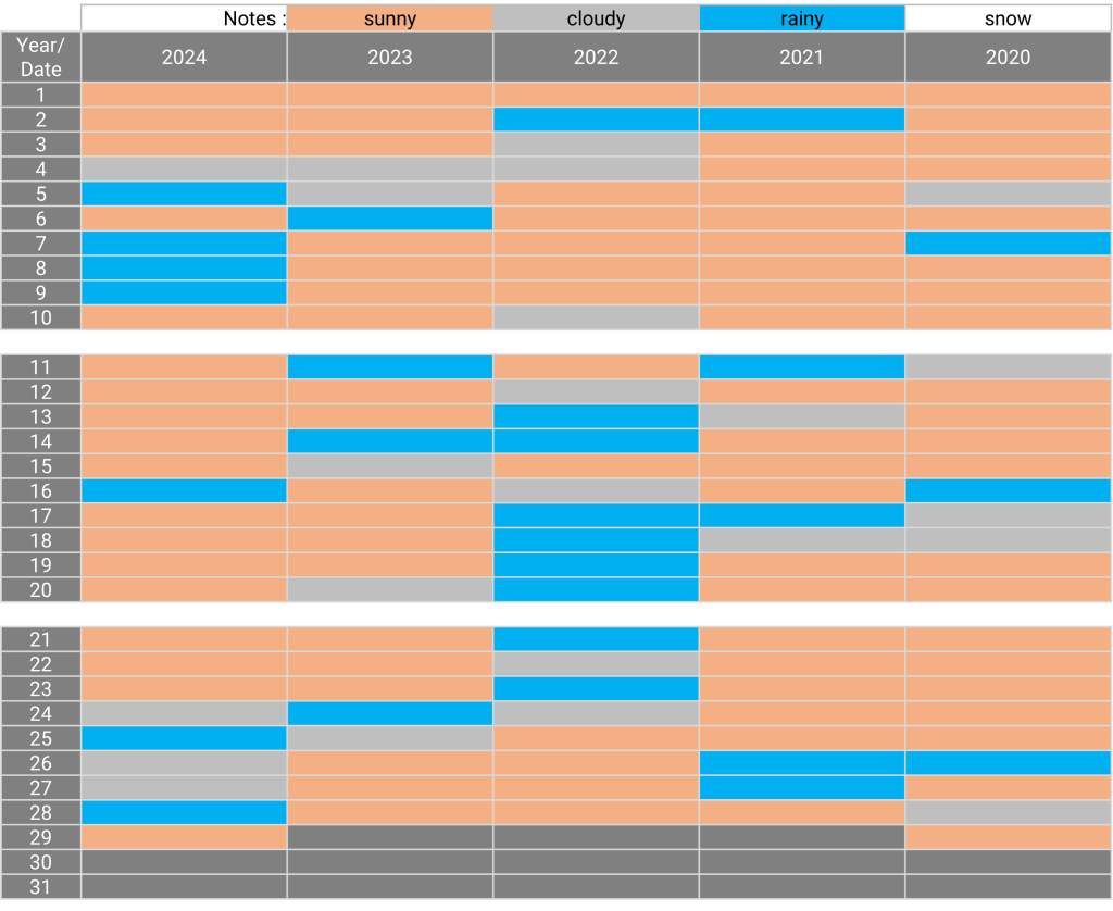 The weather: Okinawa February 27.12.2024 The weather in February for the past 5 years Sunny days for the past 5 years: 1