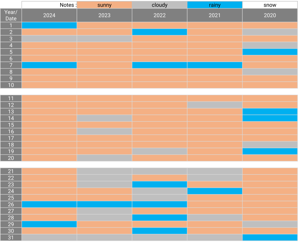 The weather: Okinawa March 27.12.2024 The weather in March for the past 5 years Sunny days for the past 5 years: 6, 9, 10, 11, 15, 17
