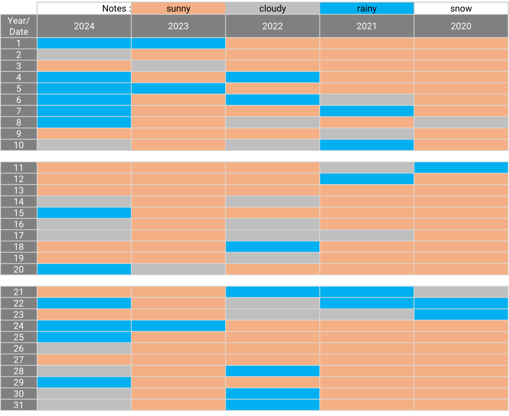 The weather: Okinawa October 27.12.2024 The weather in October for the past 5 years Sunny days for the past 5 years: 13, 27