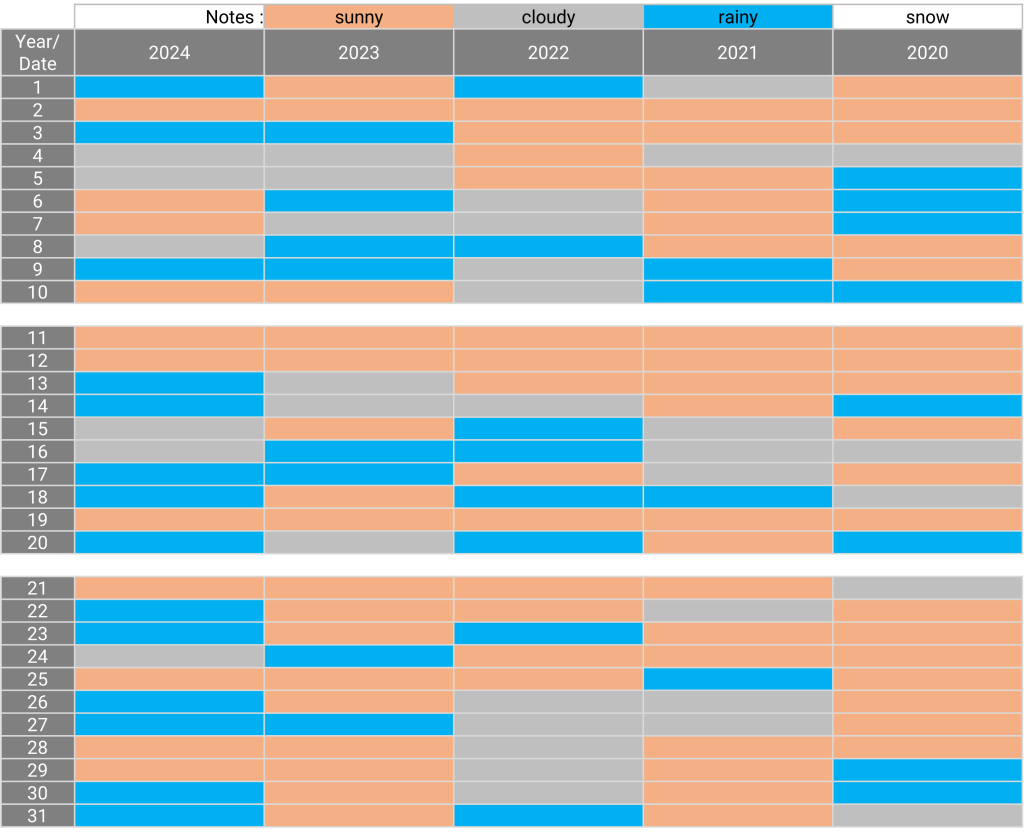 The weather: Sapporo, Hokkaido August 23.08.202413.02.2025 The weather in August for the past 5 years Sunny days for the past 5 years: 2, 11, 12, 19