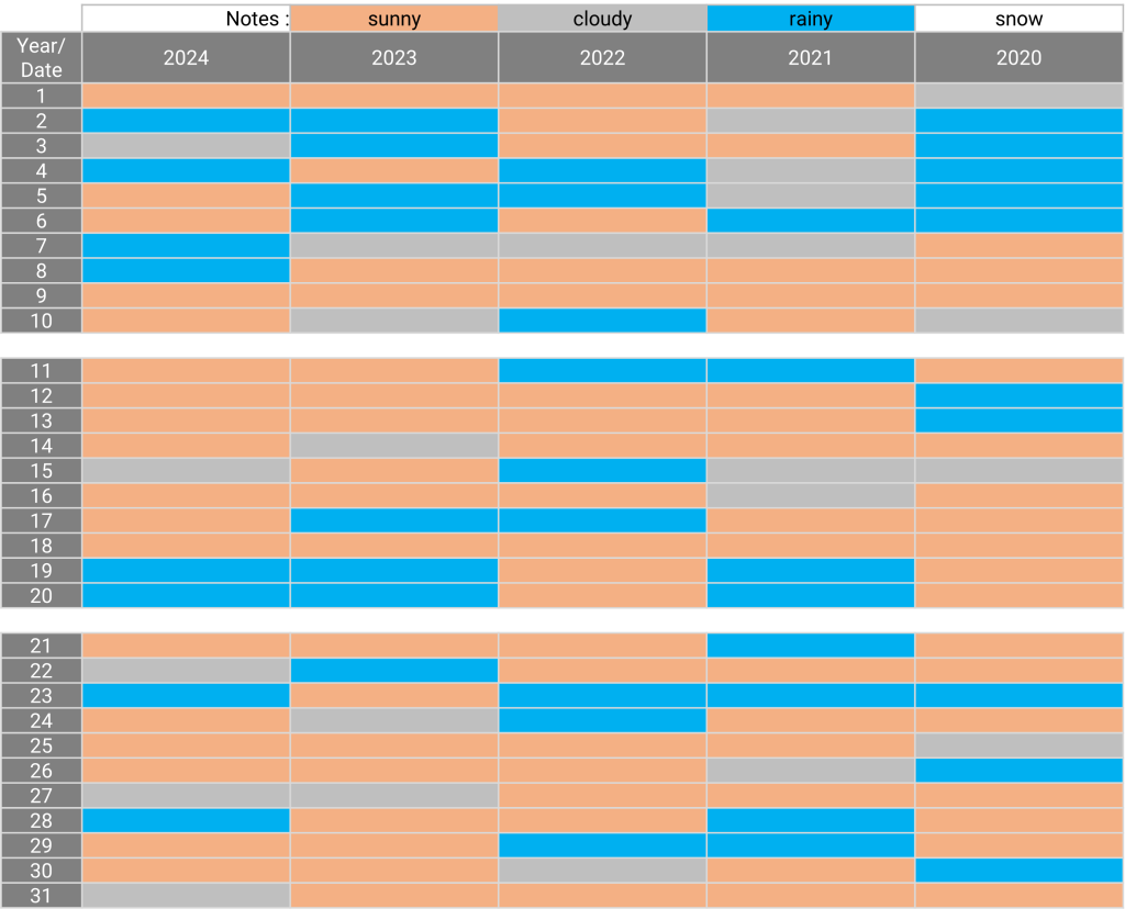 The weather: Sapporo, Hokkaido October 23.08.202413.02.2025 The weather in October for the past 5 years Sunny days for the past 5 years: 9, 18
