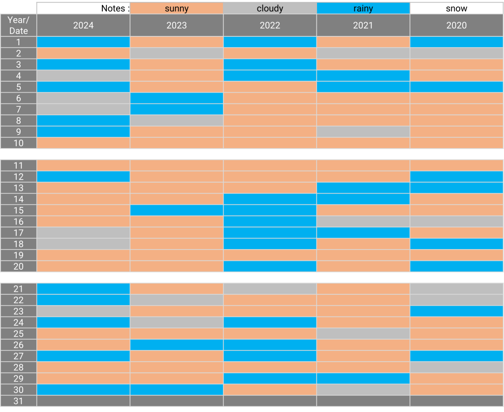 The weather: Yokohama, Kanagawa April 20.12.2024 The weather in April for the past 5 years Sunny days for the past 5 years: 10, 11