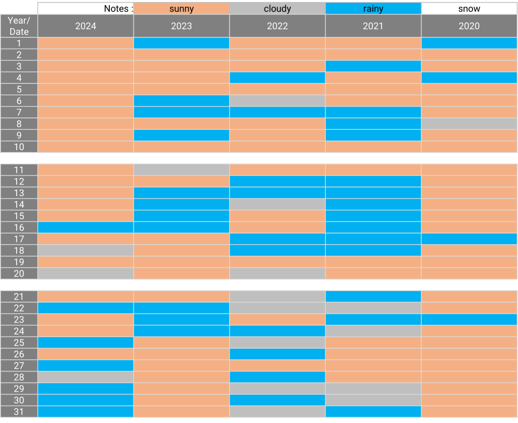The weather: Yokohama, Kanagawa August 20.12.2024 The weather in August for the past 5 years Sunny days for the past 5 years: 2, 5, 19