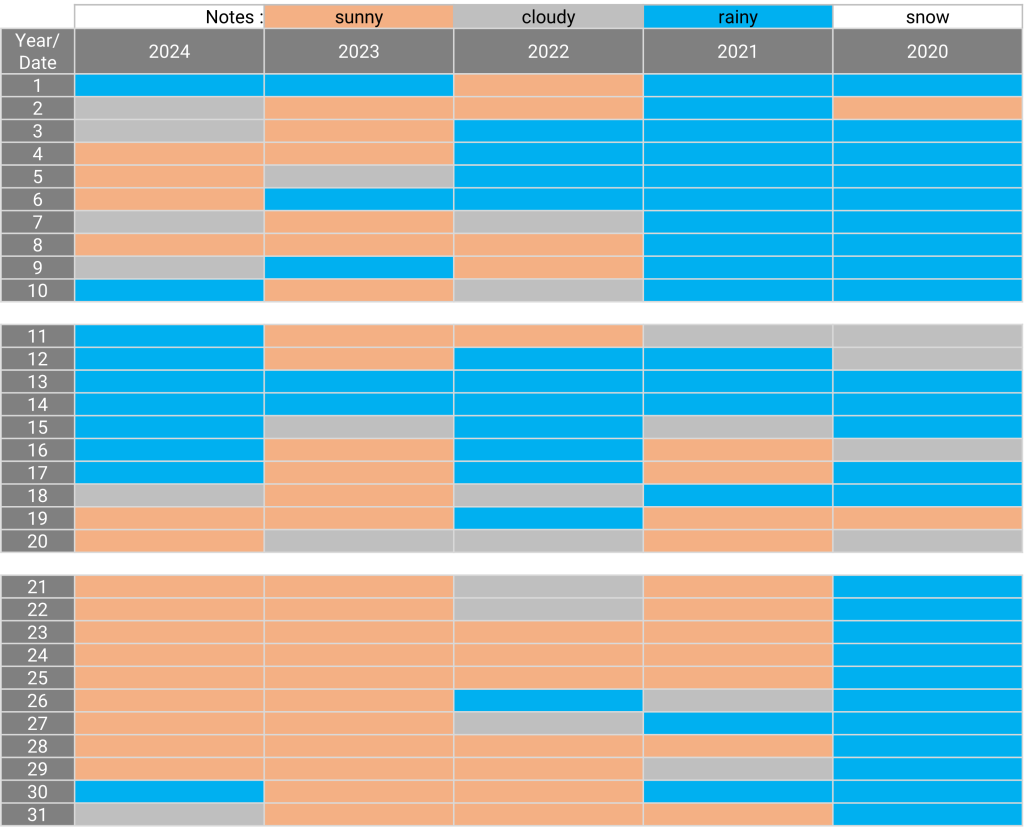 The weather: Yokohama, Kanagawa July 20.12.2024 The weather in July for the past 5 years Sunny days for the past 5 years: N/A
