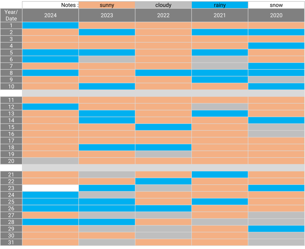 The weather: Yokohama, Kanagawa March 20.12.2024 The weather in March for the past 5 years Sunny days for the past 5 years: 3, 11, 17