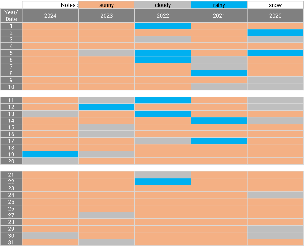 The weather: Tokyo December 04.08.202406.02.2025 The weather in December for the past 5 years Sunny days for the past 5 years: 4, 18, 20, 23, 25, 26, 28