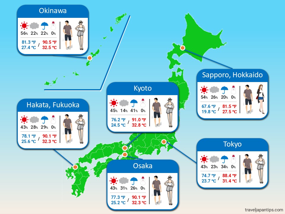 ☑ Japan’s July weather and average temperatures in major travel destinations.