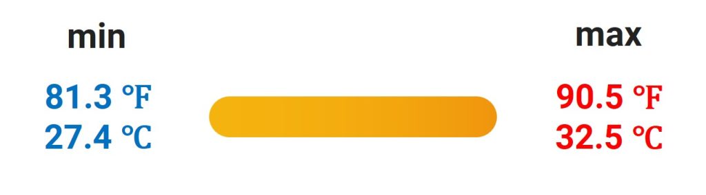 Feels like a hot and humid day in upstate New York, but even more intense! The temperature is similar to NYC in August, but the air is heavier, and you start sweating almost immediately.