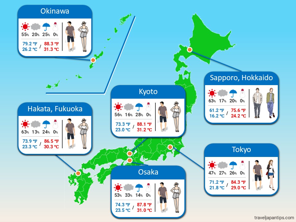 - If traveling from Hokkaido to Central/Southern Japan, prepare for a significant increase in temperature and humidity.